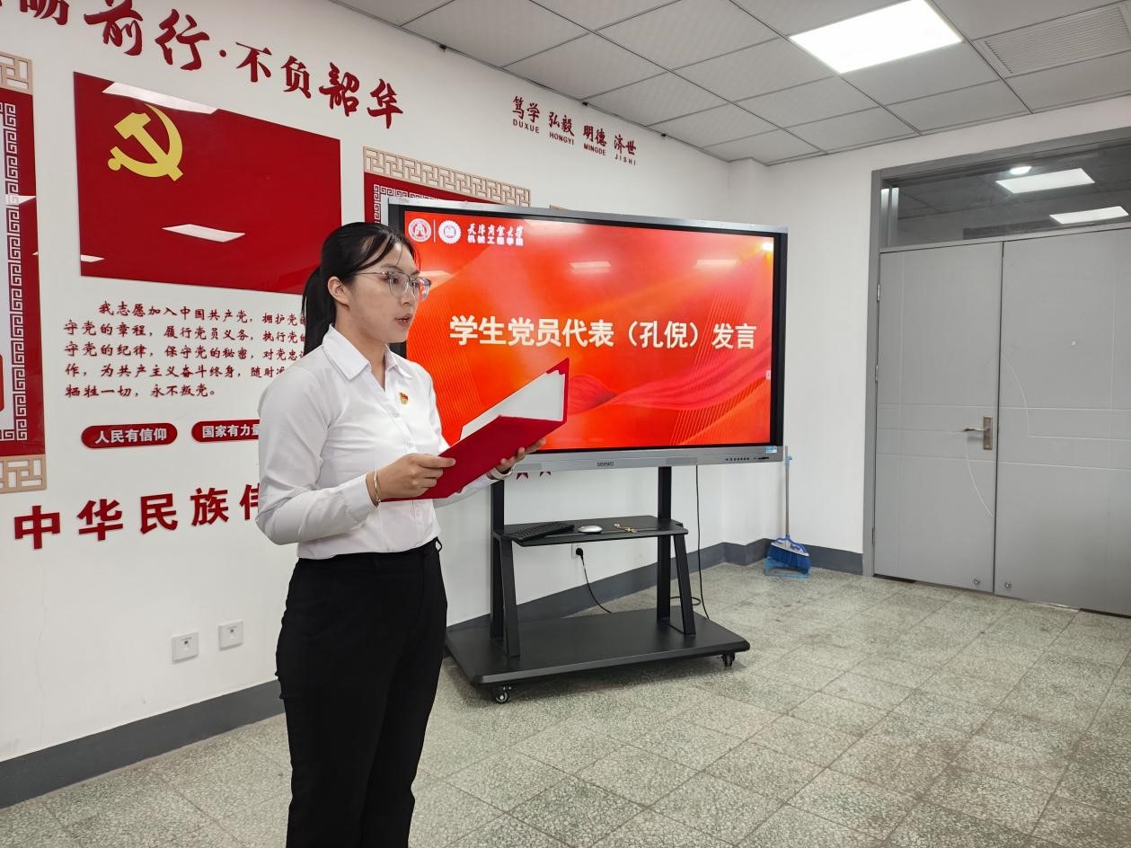 新发展党员代表孔倪表示,作为新时代青年党员,将以更高标准严格要求自己,在学业上深耕专业知识,在实践中投身志愿服务与社会实践,在日常里保持清醒认知,自觉接受监督,以优秀党员为榜样,在学习中争当先锋,在困难前勇毅前行,用实际行动书写共产党员的责任担当。