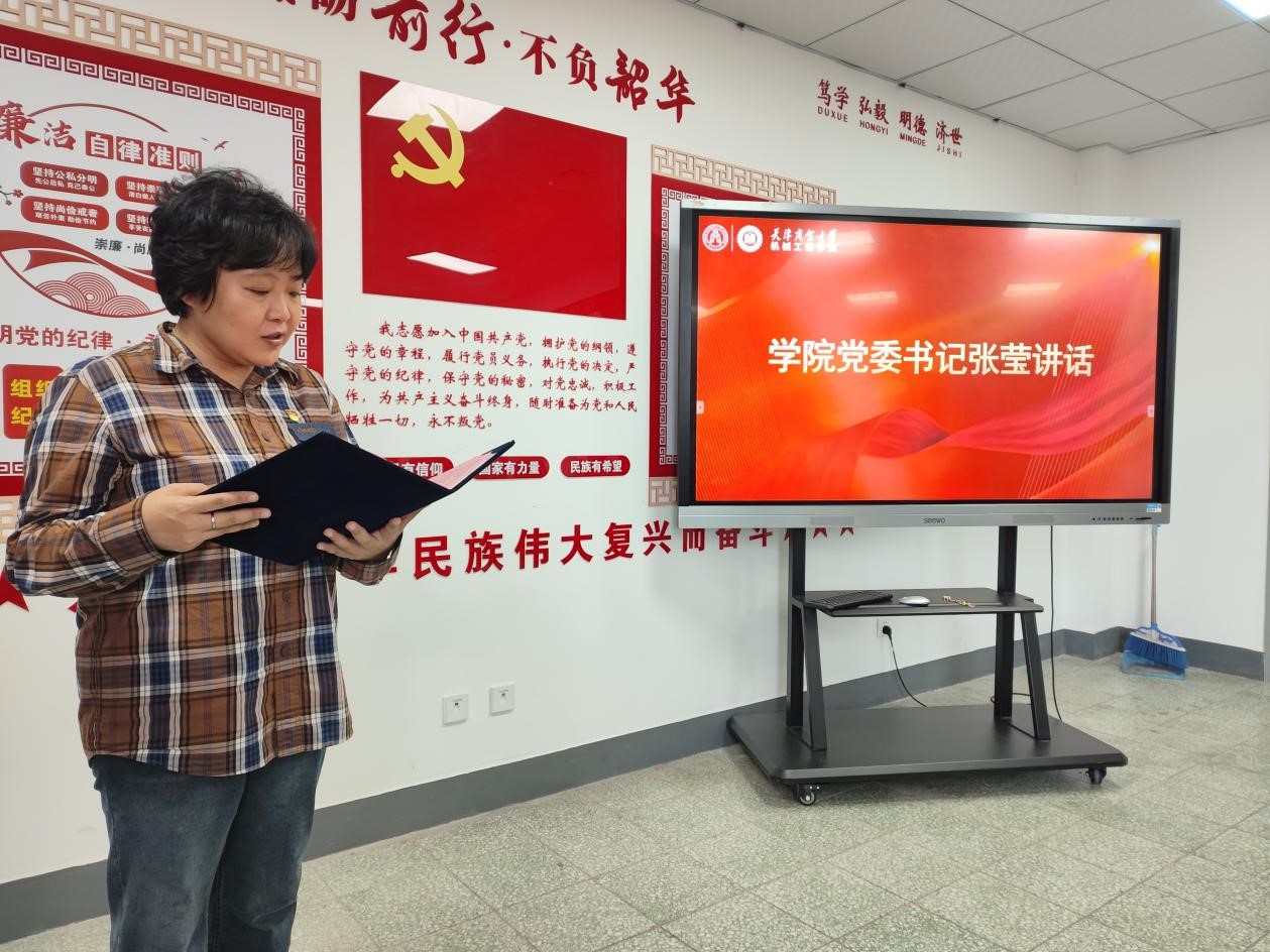 近日,机械工程学院举办“扣好人生第一粒扣子”——2025年春季新发展党员入党宣誓暨“入党第一课”活动。机械工程学院党委书记张莹、党委副书记王珊,组织员、学生党支部书记及新发展党员代表等40余人参加本次活动。