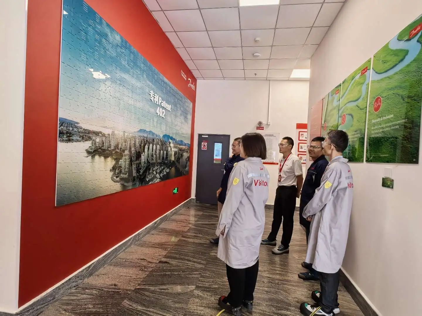 现场,校企双方签订了实习实践基地共建协议,举行了实习实践基地揭牌仪式。通过基地共建,企业可接纳学生参观学习,学生也可结合研究项目长期在企业开展实习实践,实现“校育英才、企助成才”的双向奔赴。随后,学院一行参观了公司实验室专利墙、各类参数测量与性能测试方面的实验室。