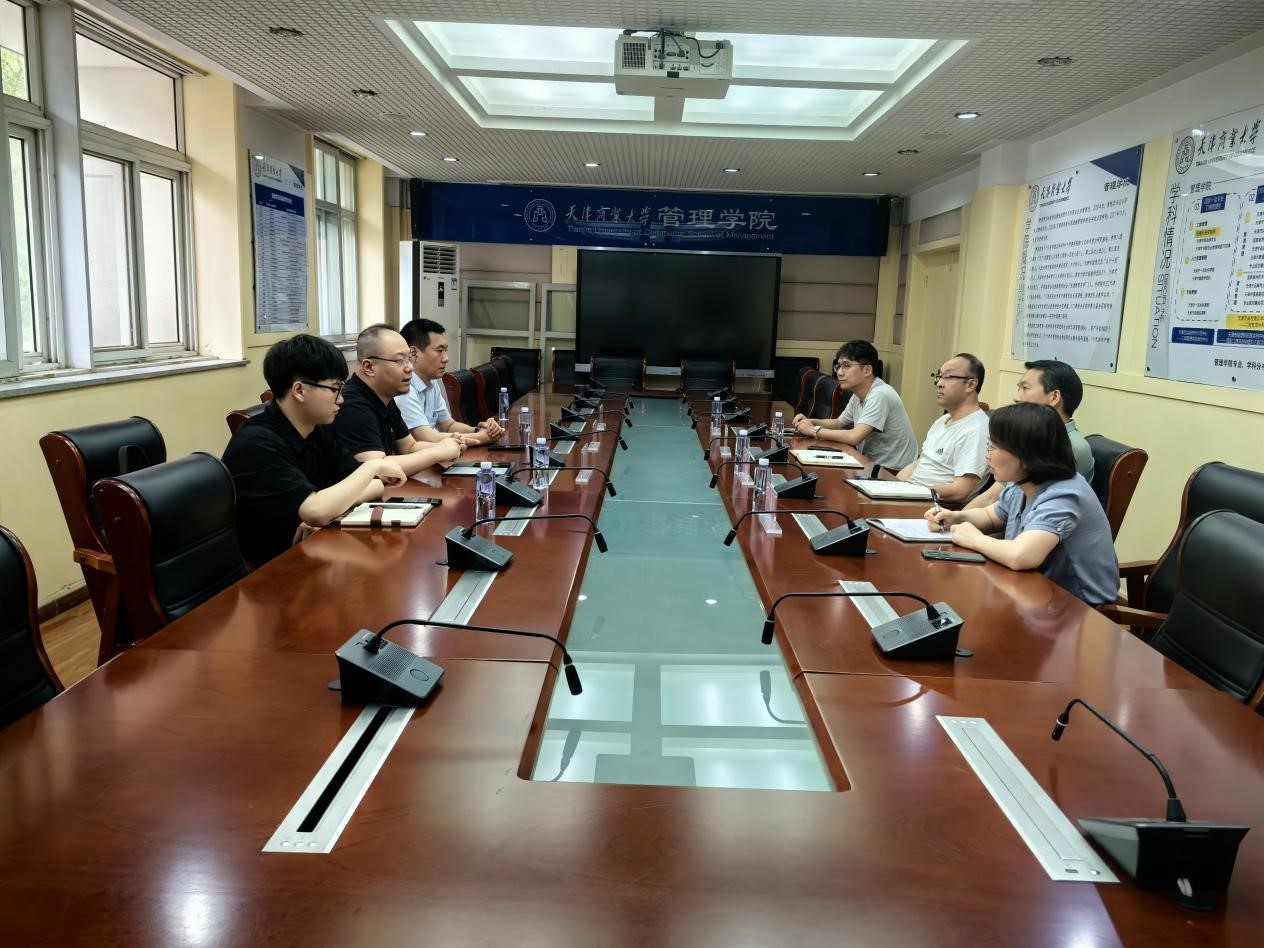 7月3日,天津华北集团产业发展板块总经理张伟良、董事长办公室冯雷,以及天津市高新技术企业协会产业发展研究院院长胡雪飞、天津市节水产业协会副秘书长车宇博一行到访德赢官网管理学院。管理学院(商业模式研究院)院长王庆、党委副书记刘宁、物流管理系主任陈陌、工商管理系主任刘元元参加交流座谈。