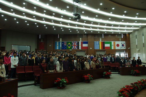 10 月 16 日 上午,国际教育学院 2011 级新生开学典礼在图书馆三层报告厅隆重举行,会议由国际教育学院直属党支部郑志明书记主持,乔秀梅院长、齐萱副院长、财务管理(中澳)专业 2011 级新生班主任和全体新生参加了开学典礼。