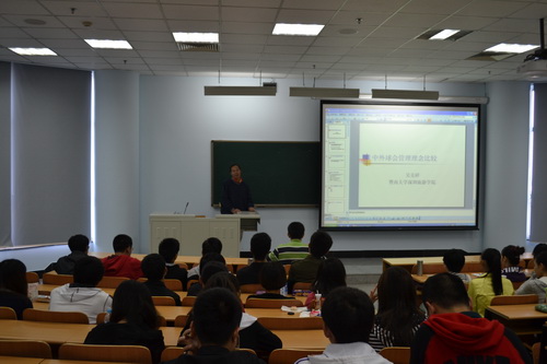 吴克祥教授有着多年从事高尔夫专业教学工作的学术经验, 余荣熙总经理有着多年从事高尔夫俱乐部管理工作的实践经验,在此次高尔夫专业教育中,吴教授和余总分别就“中外高尔夫球会管理比较”和“中国高尔夫产业结构概述”的两个主题对学生进行了高尔夫行业的专业讲解。