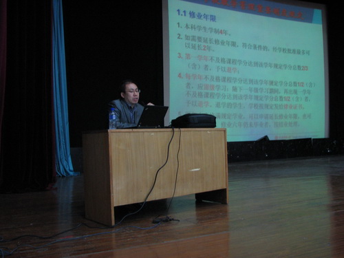 11月9日,机械工程学院在科学会堂举办了以“培养方案解读、教学制度简介”为主题的新生入学教育讲座。此次讲座是由副院长计宏伟主讲,2011 级全体同学参加了此次入学教育活动。