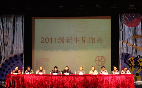 11 月 16 日 下午,艺术学院 2011 级新生见面会在德赢官网科学会堂隆重举行。学院党总支书记张建东、院长王其华教授、党总支副书记梁强,院党总支委员、教学督导组组长王富瑞教授,院学术委员会副主任乔雨林副教授,艺术设计系主任王俊琪副教授,造型艺术系主任李安其副教授,理论教学部主任吴向阳副教授,院党总支委员、教师党支部书记王涛,院行政党支部书记、院团委书记、学生党建负责人韩志文等出席典礼并于主席台就座。大会由学院党总支书记张建东主持。
