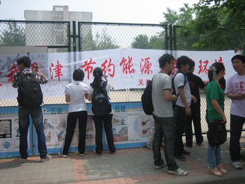 今年是天津市第二十五届科技周,本届科技周的主题是:携手建设创新型城市 ----- 科学发展 科技创新 科普惠民。产学研办公室在学校领导和红桥区科协的大力支持下,与德赢官网团委共同举办了“爱我天津,节约能源,保护环境”宣传环保系列活动。该系列活动包括以漫画展的形式向广大师生进行“低碳生活在我身边” 环保意识教育,组织观看以环保内容为主的《全国科技活动周优秀科教影片展播》光盘,并在十八日举行了“低碳生活,节约能源从小事做起、从我做起、从现在做起”签字仪式。校团委和产学研办公室负责人及老师参加了仪式并庄重承诺在宣传横幅上签下自己的名字。过往的老师和同学也纷纷宣传条幅上签字,表示了对低碳生活、节能环保的决心。