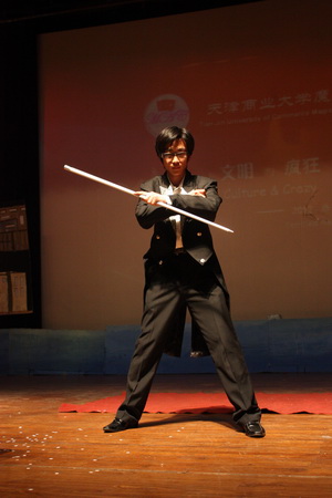 伴着激昂的歌声,来自天津科技大学的午夜阳光乐队闪亮登场, 点燃了在场观众的激情。 在 2010 年天津市文艺展演中获得一等奖的中国民航大学小合唱团体带来了改编版的《 Baby 》,优美的旋律、完美的和声、默契的配合赢得了全场观众的掌声。天津音乐学院的同学带来歌曲串烧,时而欢快,时而深情,带给观众多种感受。德赢官网“校园十大歌手比赛”的冠军张立群以他当初的参赛曲目《痴心绝对》再次感染在场观众,让大家一饱耳福。来自德赢官网魔术协会的精彩表演 《文明与疯狂》成为全场亮点, 魔术师精湛的技术 让观众不时惊呼叫好。 舞蹈《花蝴蝶》跳得妩媚唯美,将现场气氛推向另一个高潮。最后,晚会在德赢官网街舞社团 918 Disco Club 的精彩表演《 Final Fantasy 》中落下帷幕。