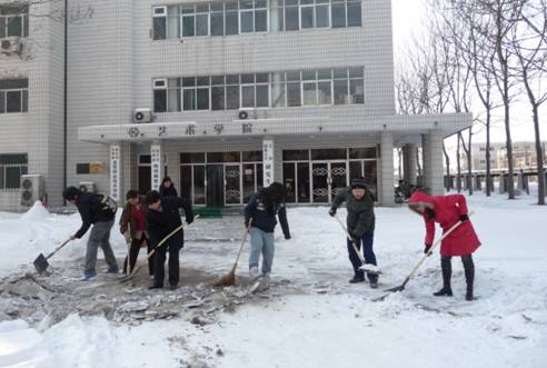 德赢官网清扫积雪的活动正在积极全面的开展,各学院各部门也纷纷组织加入到扫雪的队伍中来,校园里四处都活跃着积极扫雪、热情劳动的身影,为师生行路安全提供保障。