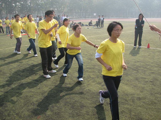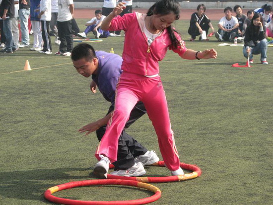 此次运动会以趣味集体项目为主,每个同学都能参与进来,共设有 背夹篮球、 30 米障碍接力跑、盛水接力、手足情深、移山倒海、 8 字跳绳、十人十一足等 7 个趣味团体项目在同学们的加油和助威声中得到丰富多彩的演绎,各班班主任代表本班同学参赛受到了同学们的热烈欢迎,也把比赛推向了新的高潮。