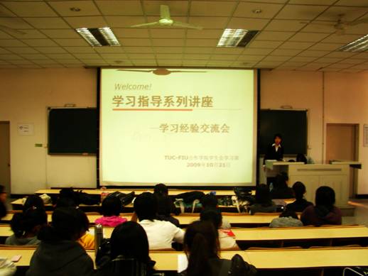 10 月 21 日 ,为了让刚进入大学校园不久的新生全面了解大学四年的学习生活,同时结合学院酒店管理专业对托福成绩的要求, TUC-FIU 合作学院为 09 级新生举办了“学习经验交流会”。此次经验交流会特意邀请到 天津师范大学外语学院院长白人立教授为同学们传授经验和学习方法, 白院长对大一新生提出了具体的学习和生活上的要求,并详细全面细致地介绍了托福考试要求,他谈到托福考试是对个人能力、心理、身体素质的综合要求,因此英语学习任务艰巨。白院长还教导学生要注重英语交流,及时调整心态,掌握正确的学习方法,树立科学的人生观、学习观。白院长的讲话,激励全场学生,掀起交流会的高潮。