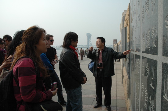 10 月 24 日 ,国际教育学院为外国留学生安排了一次“中国汉字”实地讲座。来自法国、泰国、韩国、日本等国家的 18 名留学生在学院老师的带领和中国学生的陪伴下,到塘沽外滩汉字文化墙进行了实地学习体验。