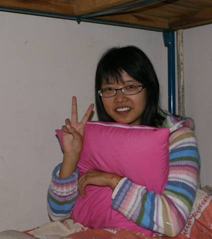 王院长前往宿舍看望,并亲手送给尹丽同学画册