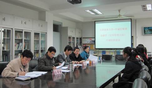 11 月 8 日,德赢官网与中诚信集团联合培养金融学专业(信用管理方向)招生面试工作在经济学院 3 楼会议室进行,中诚信集团副总裁黄建悦及中诚信集团北京分公司副总经理郝晓冬及经济学院刘小军院长、经济学院金融系主任王常柏教授、金融教研室主任刘玲博士共同主持了面试。此次招生面向全校 2009 级学生,经过报名筛选,共有 50 余名学生获得面试资格,在进行严格的面试后, 35 名同学有机会进入金融学专业(信用管理方向)学习。