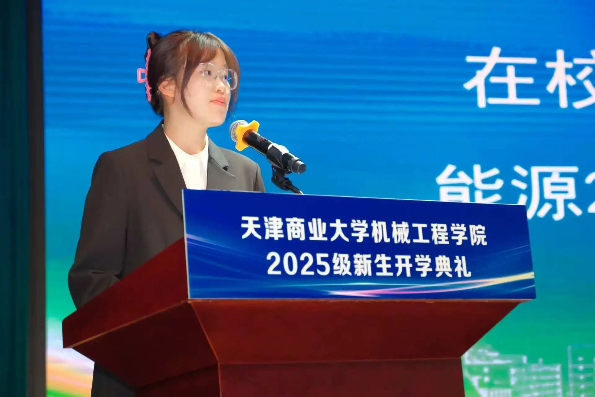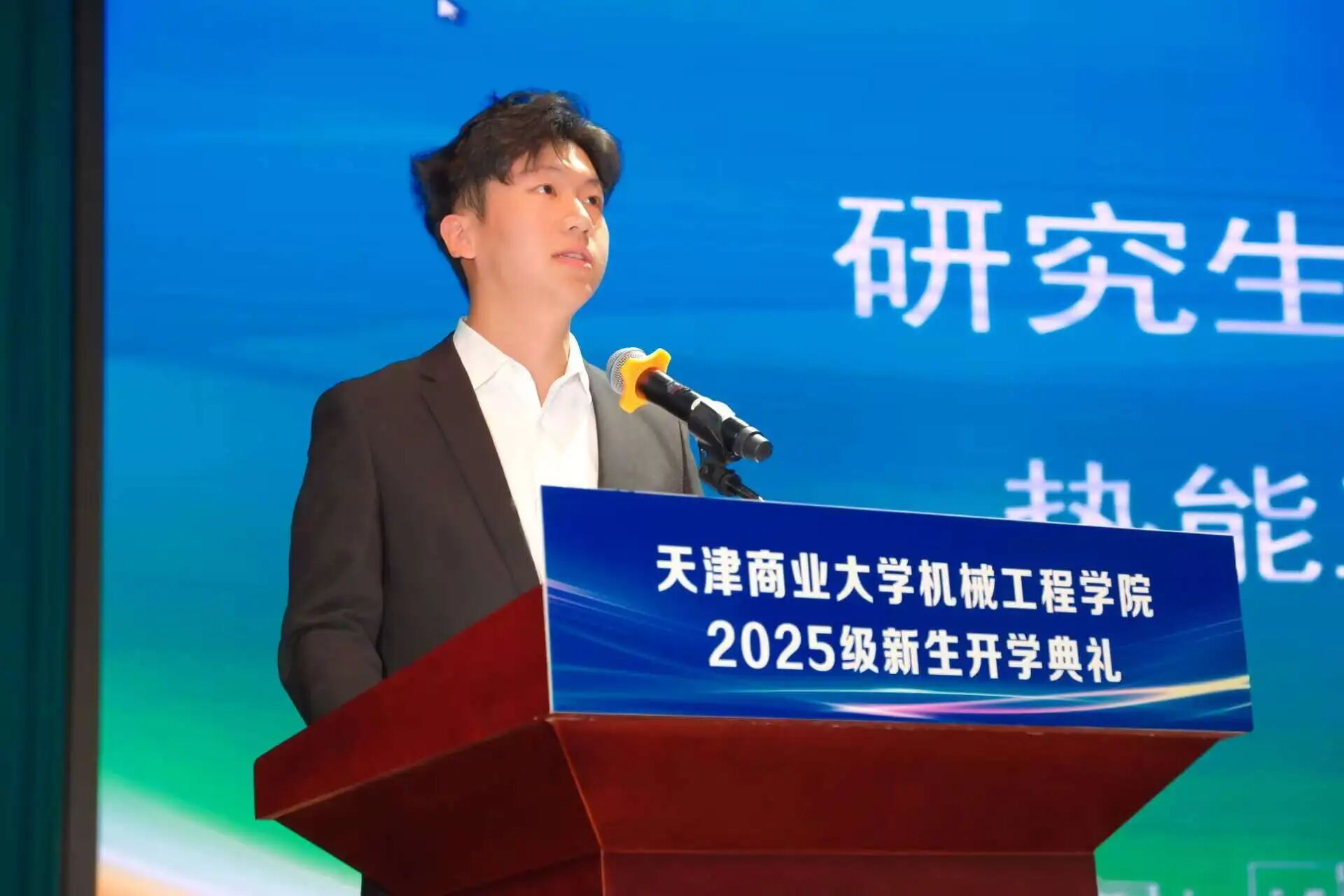在校生代表能源2301班赵虹宇、本科新生代表建环2504班陈子昂及研究生新生代表热能工程专业付银铎等同学分享了自己对大学生活的认知及感想。