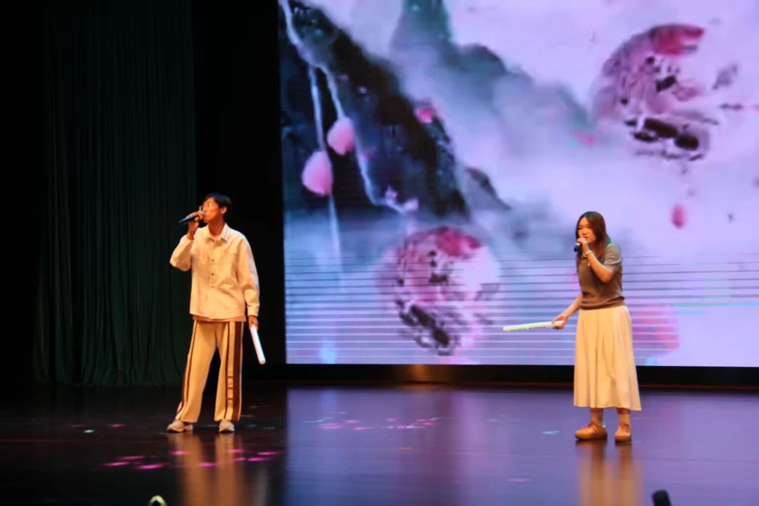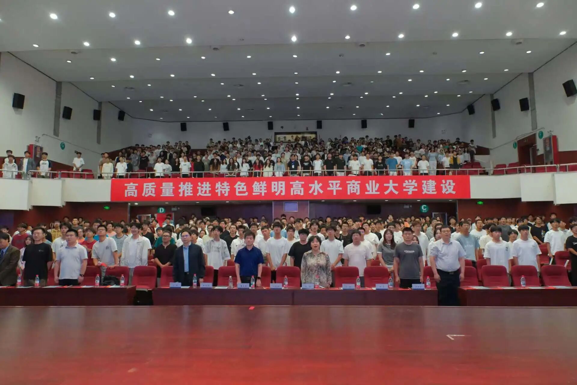 汇演在《Fly Up》的动感节奏中开场,歌舞《You and Me》以灵动舞步传递同伴温暖,歌曲《不遗憾》唱出与过去和解、向未来出发的勇气;相声《成长的烦恼》用笑声为新生解压,合唱《歌唱祖国》将全场氛围推向最高潮——一段段节目串联起“相遇·探索·启航”的旅程,为2025级新同学送上第一份热烈而温暖的天商记忆。