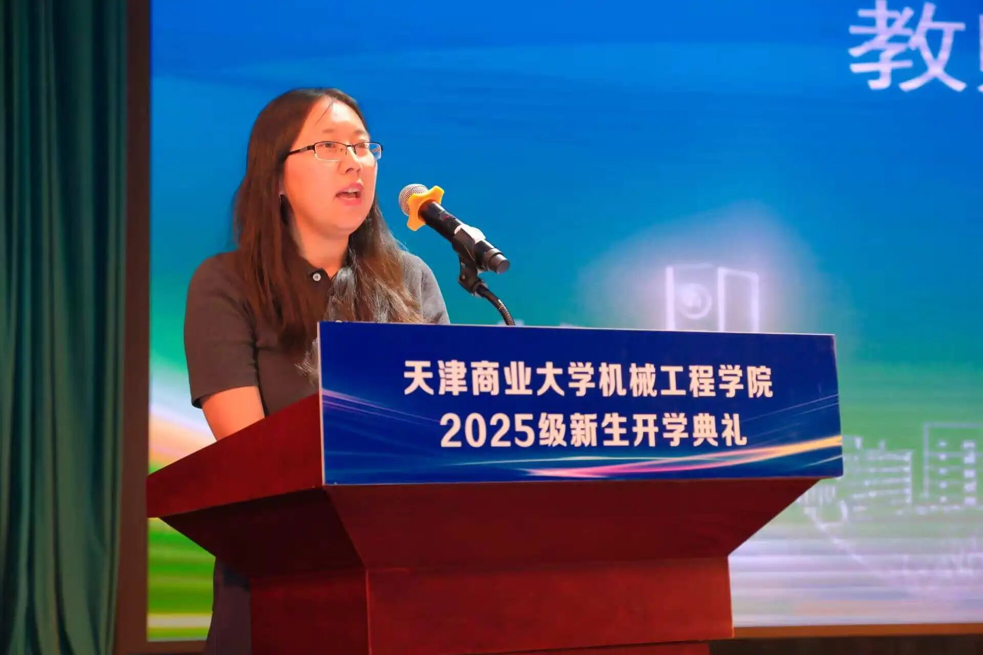 新生班主任教师代表王雅博向新生致以由衷的祝福和殷切期望。她希望同学们勇敢面对挫折,积极拥抱挑战,以开放包容的心态拥抱世界,最终收获一个更强大的自己。