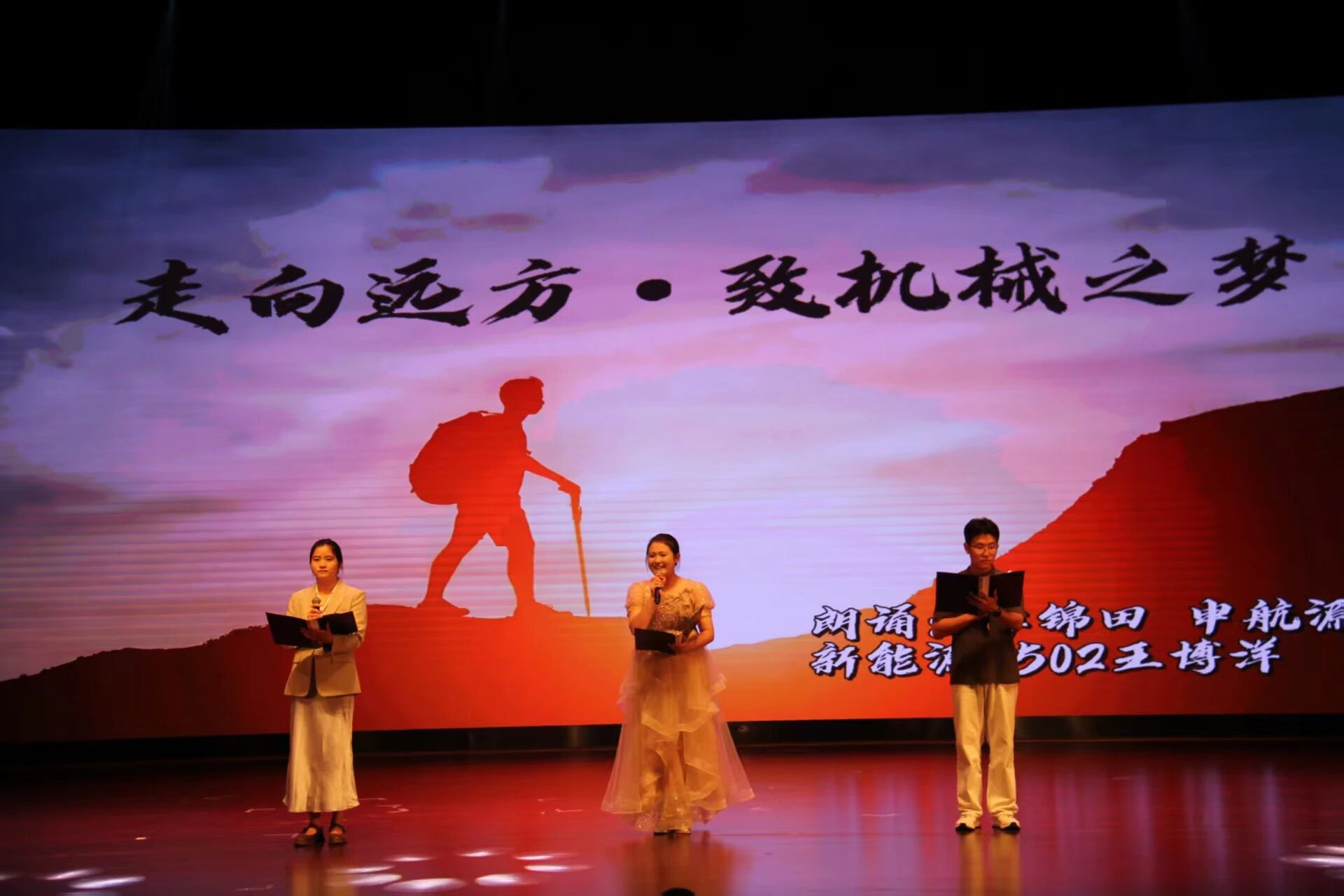 晚会特别设置“时空对话”环节:大屏幕上,吉钰琪、陈月、骆丽蓥、刘峰、黄梦婷、付文品等优秀毕业生跨越时差与地域,用一段VCR送来“学长学姐的答案”——考研、留学、入职名企、扎根西部、考取公务员,他们的坚持与选择化作一句句真诚祝福,点亮2025级新生前路,也让“机械青春”在传承中继续飞扬。