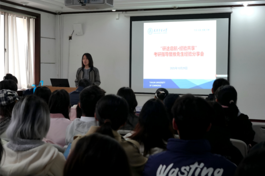 10月29日下午,经济学院、外国语学院在校一站式学生社区205室联合举办“研途启航·经验共享”考研指导暨推免生经验分享会。研究生处副处长于雅岑、综合管理科科长杨未未,经济学院党委副书记孙瑶、辅导员李铭、2026届推免生代表以及各年级有考研及推免意向的学生参加活动。
