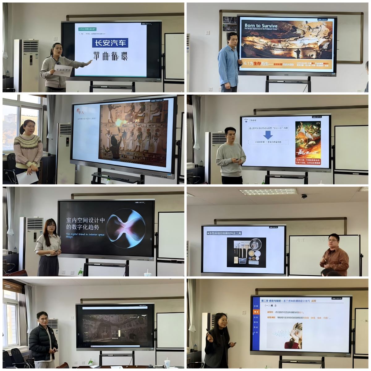 竞赛现场,参赛教师结合艺术学科特点,呈现了风格各异的教学风采。视觉传达设计系教师赵颖涛探索字体设计的创新路径,引导学生提炼汉字结构美学;工业设计系教师赵姗姗的课程聚焦“设计如何触动人心”,她以“感知原理”为理论框架,通过一系列互动实验破解设计背后的“用户密码”;动画系教师刘坤的课程直面“AI冲击下动画教育的变与不变”。他以经典动画的分镜头脚本为例,对比传统手绘流程与AI辅助创作的差异。竞赛设置“教学反思”环节,教学反思是教师成长的阶梯,青年教师需在“实践-反思-再实践”中不断优化教学策略,真正实现“以赛促教、以赛促研”。
