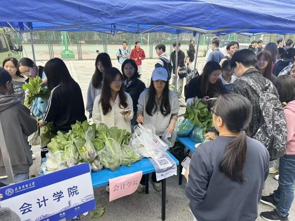 10月15日,系列活动第二场如期而至。本阶段在延续集体劳动传统的基础上,着重强化各学院的组织自主性与团队协作效能。从“天商农场”里的协同采摘、高效称重,到“蔬菜集市”上的摊位布置、创意营销,各个环节均由学生主导完成。活动提升了学生经费管理、成本核算等实务能力,让学生在完整的生产链条中理解劳动与价值创造的关系。