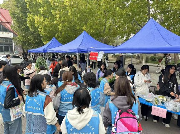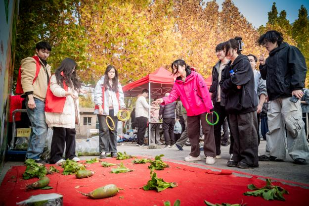11月5日,系列活动在丰收的喜悦中迎来收官。本次集市规模远超以往,蔬菜品类增至十余种,并创新开设“趣味套圈”互动环节,劳动成果的分享过程充满欢声笑语。现场气氛热烈,师生们在交易与互动中共同感受丰收的喜悦,体会劳动带来的满足感与成就感,为学校秋季学期的“天商农场”系列活动画上圆满句号。