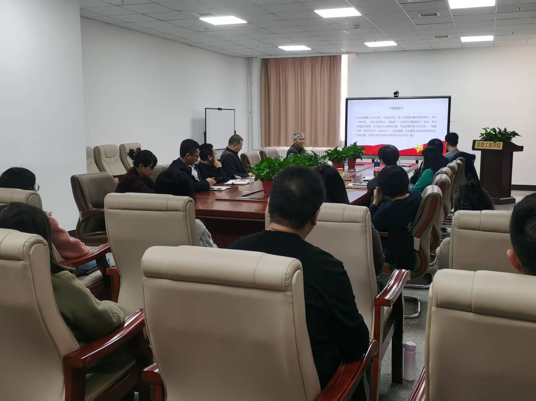 11月12日下午,信息工程学院邀请天津市委党校党建教研部钟龙彪教授为学院干部教师作专题培训。学院党委理论学习中心组成员、各系部室主任、党支部书记和青年教师代表近30人参加学习。