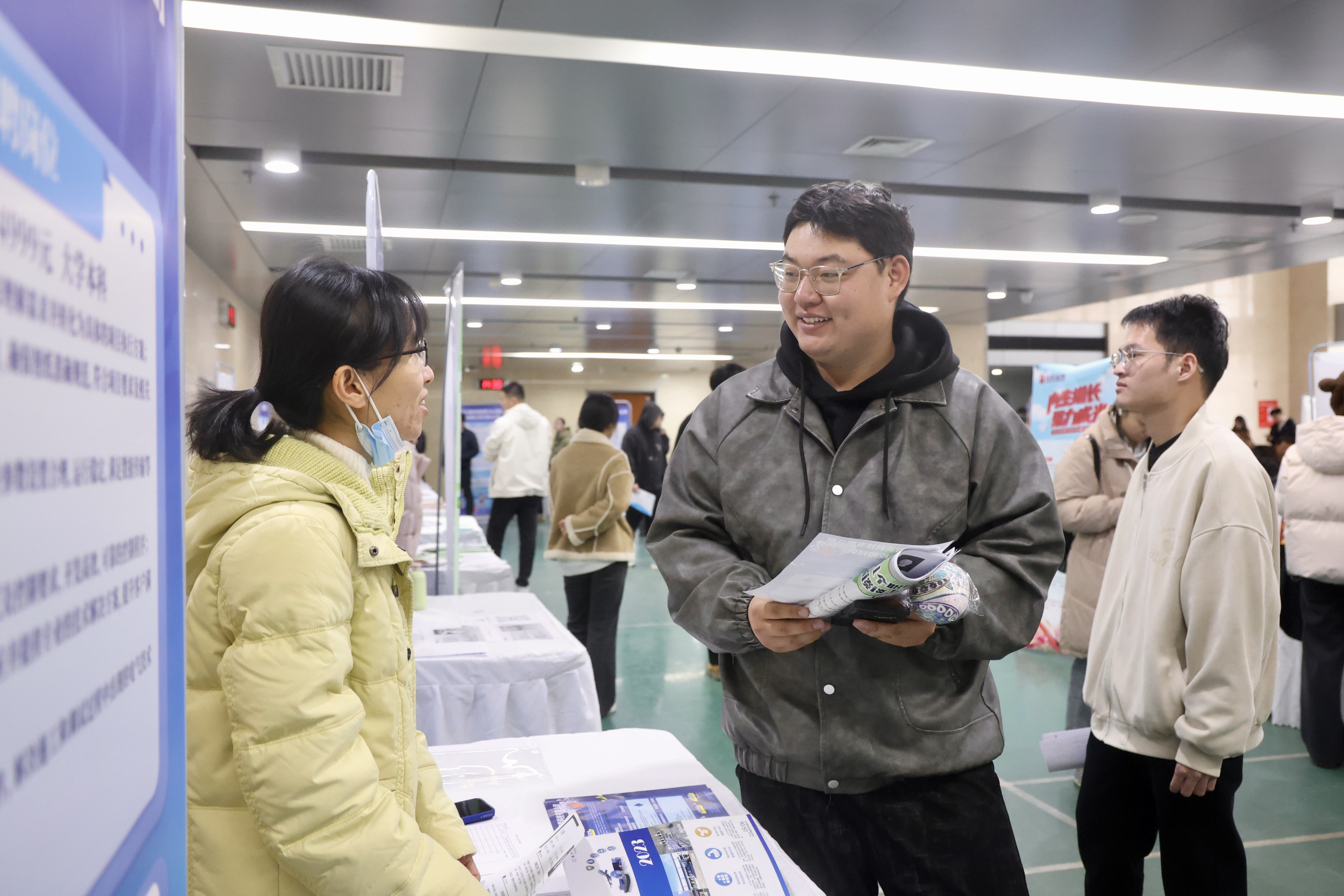 招聘会现场人头攒动,气氛热烈。康师傅饮品、正大农牧、中信证券、长江证券、屈臣氏、顺丰速运、先特网络等46余家行业领先企业携近900个就业岗位进场揽才。超过半数的岗位精准对标德赢官网经济、金融、财务管理、热能与动力工程等优势特色专业。数据科学与大数据技术专业的毕业生李好、智能制造工程专业的毕业生陈薪宇、智能科学与技术专业毕业生李婧在应聘后接受了天津电视台记者的采访,分享了求职感受与收获。