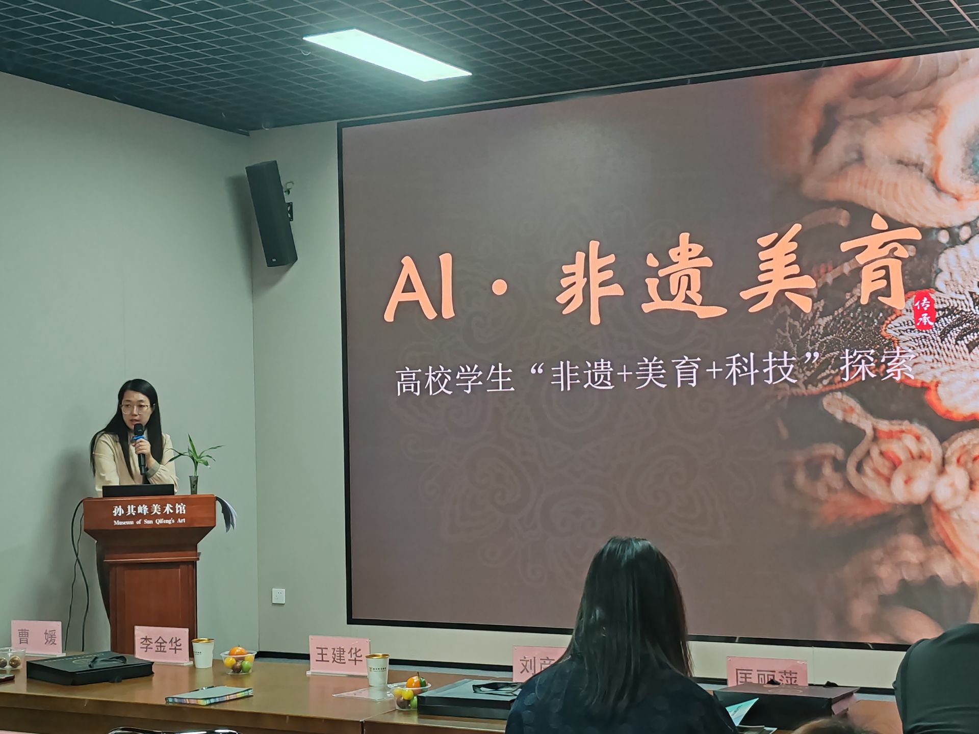 开幕式上,艺术学院院长王俊琪致辞。绘画专业教师范佳、柳称、王超、范姁晗和部分学生参加了开幕式。在专题研讨环节,德赢官网艺术学院教师范姁晗以“融合・智造——高校美育的非遗数智化创新传承”为题作报告,结合AI技术背景下的非遗实践案例,深入阐释“非遗+美育+科技”融合发展的创新策略,为现场师生带来启发。