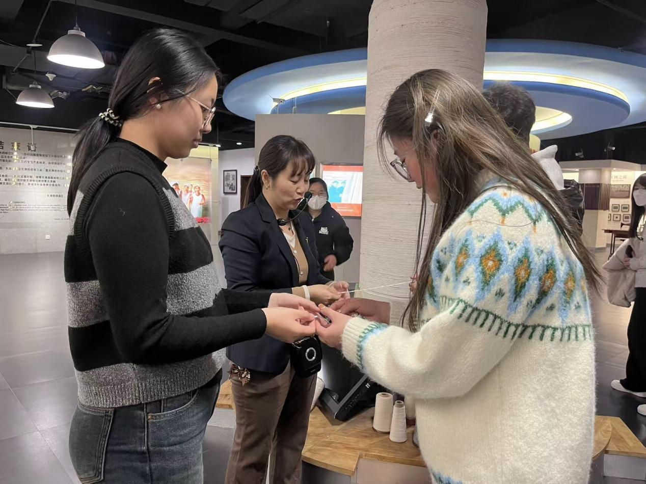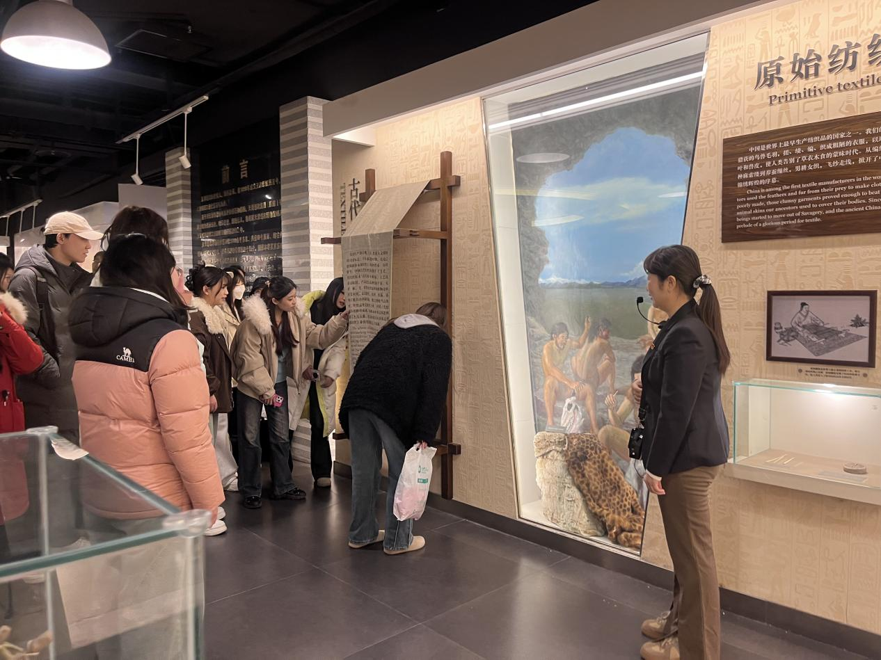 在天津纺织博物馆,讲解员带领师生开启了一场跨越时空的文化之旅。博物馆以“古代纺织”“近现代纺织”“当代纺织”及“专题展”四大展区为核心,展出文献300余册、图片5000余幅、器具2000余件,展陈文字达5万余字。百余年历史的木铁纺织机、复原的黄道婆古机、1920年北洋纱厂使用的粗纱头机、日本制造的立式开棉机……一台台纺织机械诉说着天津从传统手工业到现代工业的变迁。学生表示:“这些展品不仅是技术的见证,更是一部生动的实业救国史,让我们感受到天津纺织人敢为人先的奋斗精神。”