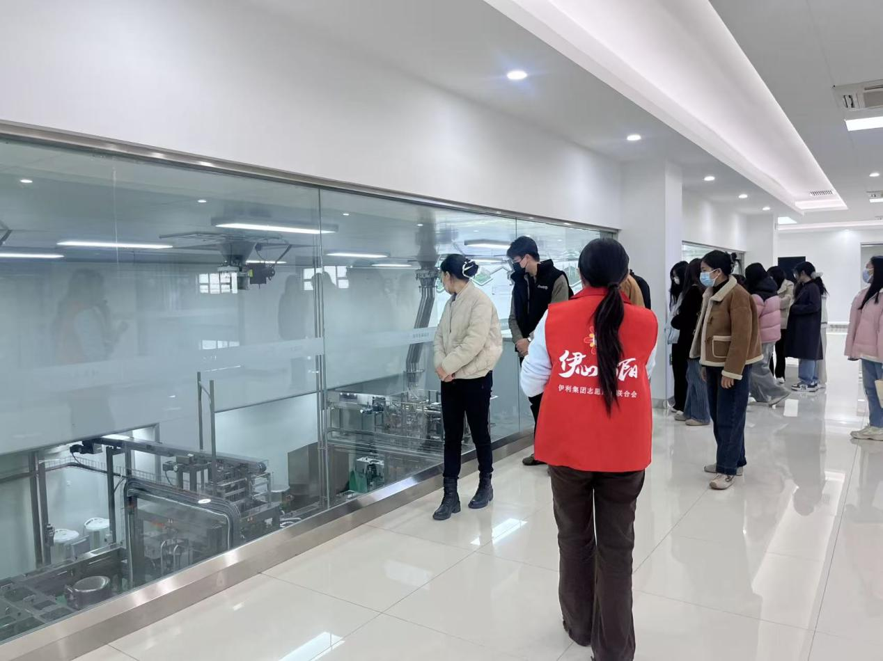 活动首站,师生们来到天津伊利乳业有限责任公司。讲解员以企业发展历程为脉络,生动诠释了“产业报国、实业兴邦”的红色理念。自1993年成立以来,伊利始终以“为国人健康赋能”为初心,从保障民生供给到助力乡村振兴,从投身公益事业到支援应急保障,每一步发展都与国家命运同频共振。在全透明参观走廊,师生们亲眼见证了牛奶从原奶检测、净乳杀菌到自动化灌装的全流程。生产线自动化率超95%,依托物联网与大数据技术,实现全流程智能化管控。讲解员指着精准作业的机械臂介绍:“每小时可处理数千升原奶,生产时间管控精确到秒。”这一场景让师生们深刻感受到现代制造业的科技魅力,也对“高质量发展”的内涵有了更直观的认识。