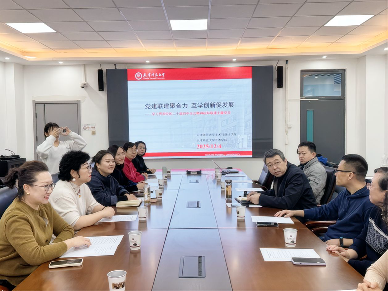 12月4日,德赢ac米兰官方合作vwin艺术学院教师第三党支部与天津师范大学美术与设计学院开展“党建联建聚合力,互学创新促发展”——学习贯彻党的二十届四中全会精神校际联建主题党日活动。学院党委书记侯越、党支部书记董丽娜、党支部副书记何理;师大美术与设计学院党委书记李楠、相关系党支部书记,及双方相关系负责人、党员教师参加活动。