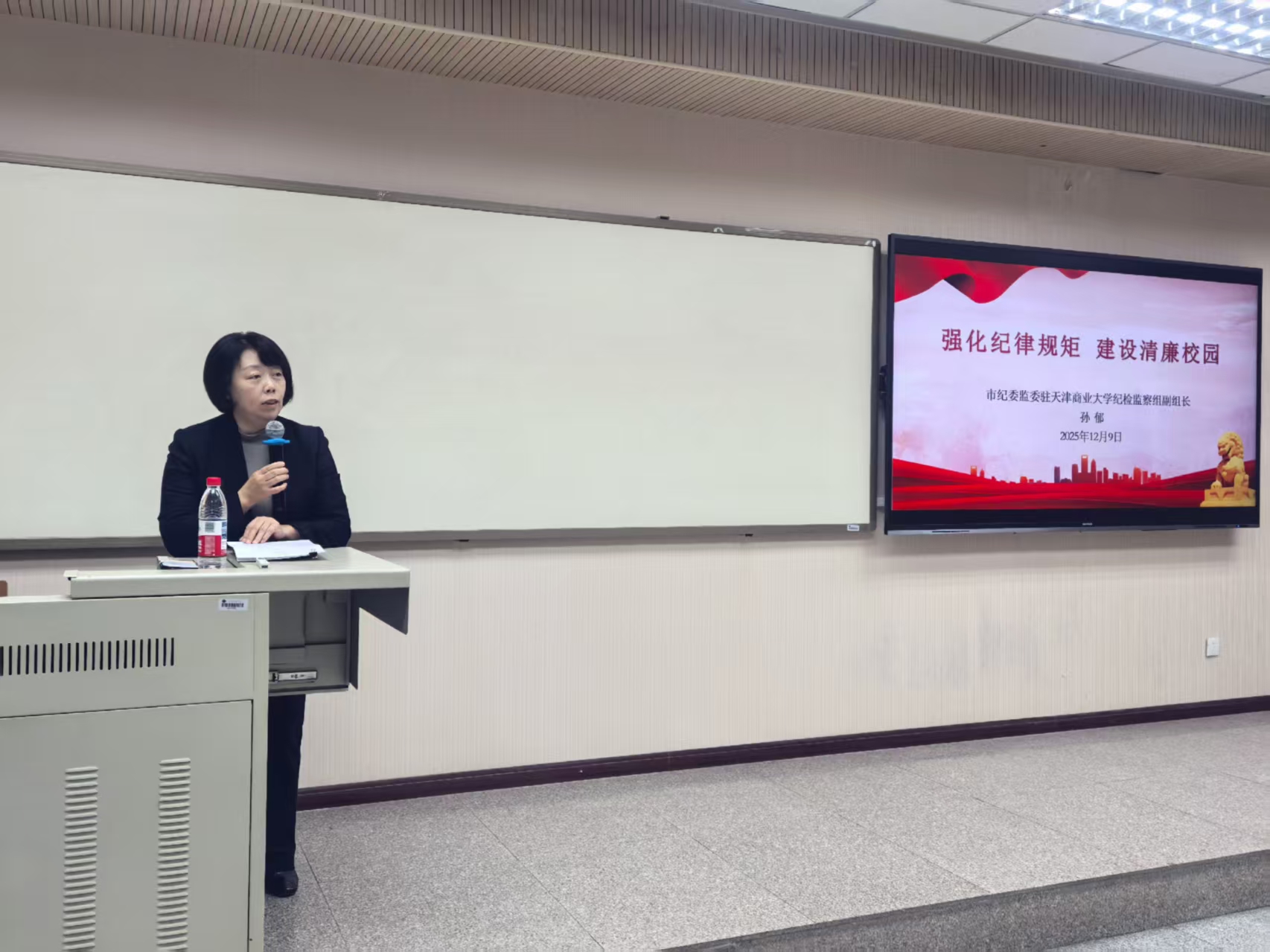 孙郁以“强化纪律规矩,建设清廉校园”为题,围绕“锲而不舍、持之以恒,将中央八项规定精神引向深入”“规范管理、提升效能,切实筑牢高校科研经费使用‘防火墙’”“全面学习、严格遵守,切实将‘六大纪律’要求内化于心、外化于行”三方面展开讲解,并结合自己长期从事高校纪检监察工作的实践经验深入浅出剖析高校教师违纪违法典型案例,要求新入职教师续强化理论学习和纪律教育,守好廉洁底线,坚定理想信念,努力成为清正廉洁、勇于担当的高校教育工作者。