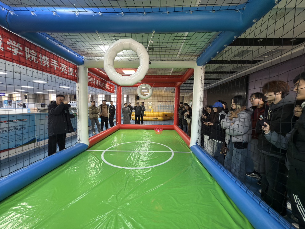 在无人机操作模拟器实训室,同学们在企业教练的指导下,依次完成起飞、悬停、精准降落等基础操作,逐步掌握低空通信链路调试、航线自主规划等核心技能;在无人机足球趣味竞技环节,学生分组协作,在动态对抗中检验低空通信技术的实时性与稳定性,切实感受理论知识向实践能力转化过程。“通过实操体验,我不仅提升了无人机操控技能,更深刻理解了微专业课程设置与产业需求的紧密关联。”微专业学生谭廷涛的分享道出了同学们的心声。