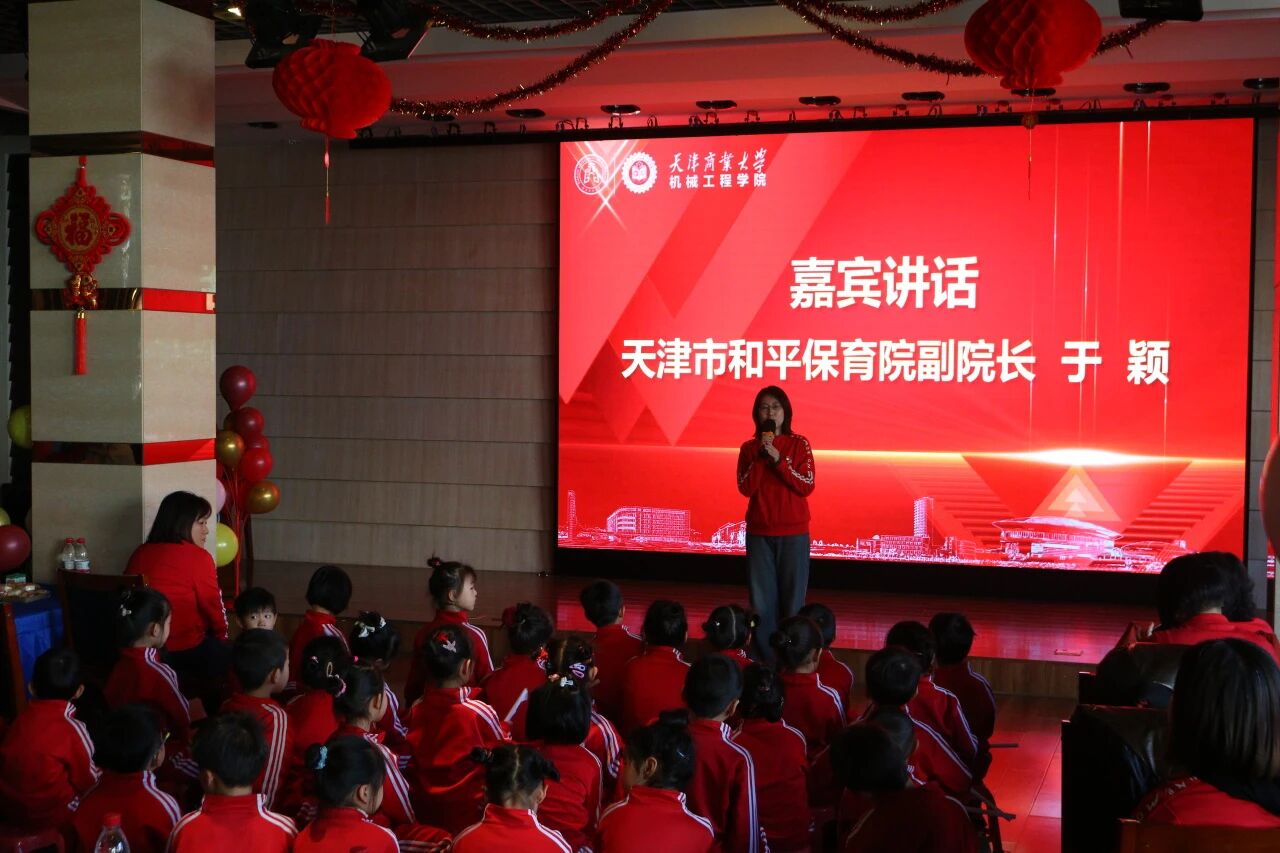 12月29日下午,机械工程学院与天津市和平保育院(天津市卫生健康委员会幼儿园)在工会310活动室联合举办“携手迎新年·共建育未来”师生联欢活动。天津市和平保育院(天津市卫生健康委员会幼儿园)副院长于颖、党办主任张景荣,学院党委书记张莹、副院长常青、党委副书记王凯出席,双方师生代表90余人参加。