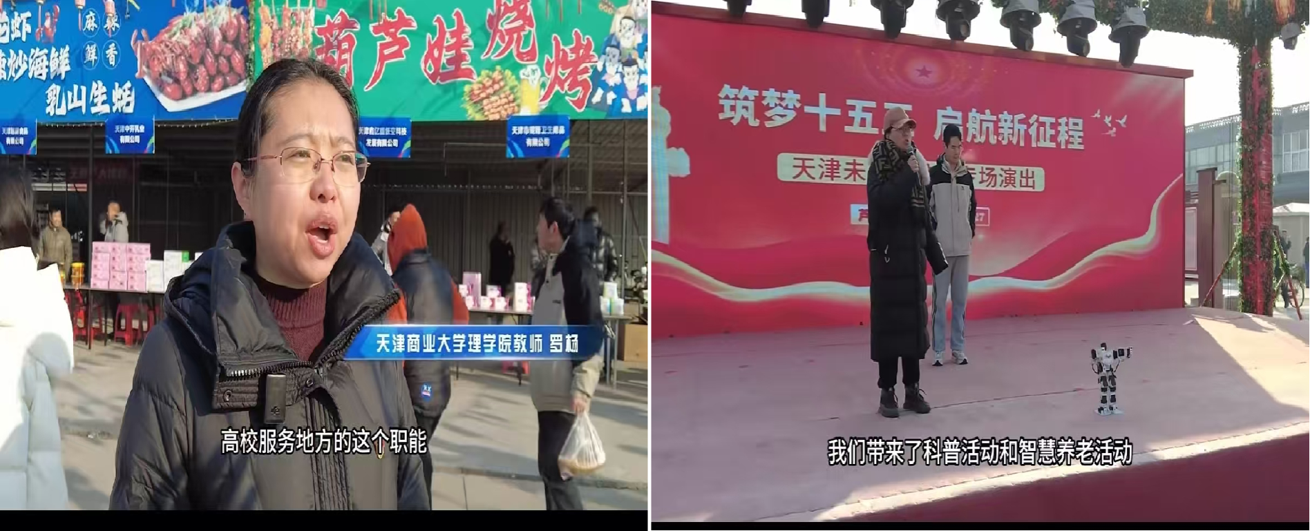 在“天津未来科技城‘筑梦十五五 启航新征程’活动启动仪式”舞台上,物理系教师党支部为现场观众带来了机器人舞蹈,机器人灵动的舞姿引得在场观众阵阵掌声。罗杨还接受了现场采访,表示希望能充分发挥高校服务地方职能,进一步加强与政府产业园区合作,推动党建引领下的政产教融合和政校企协同育人。