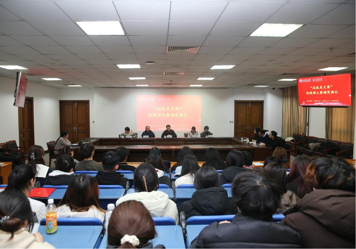 12月24日下午,由党委宣传部、党委学工部、校团委共同主办,艺术学院承办的“这就是天商”短视频大赛颁奖仪式在图书馆弘毅厅举办。校党委宣传部部长梁强、党委学工部副部长王素芳、校团委副书记沈洁出席,获奖选手代表和师生代表参加。活动由艺术学院党委副书记仉雅琼主持,