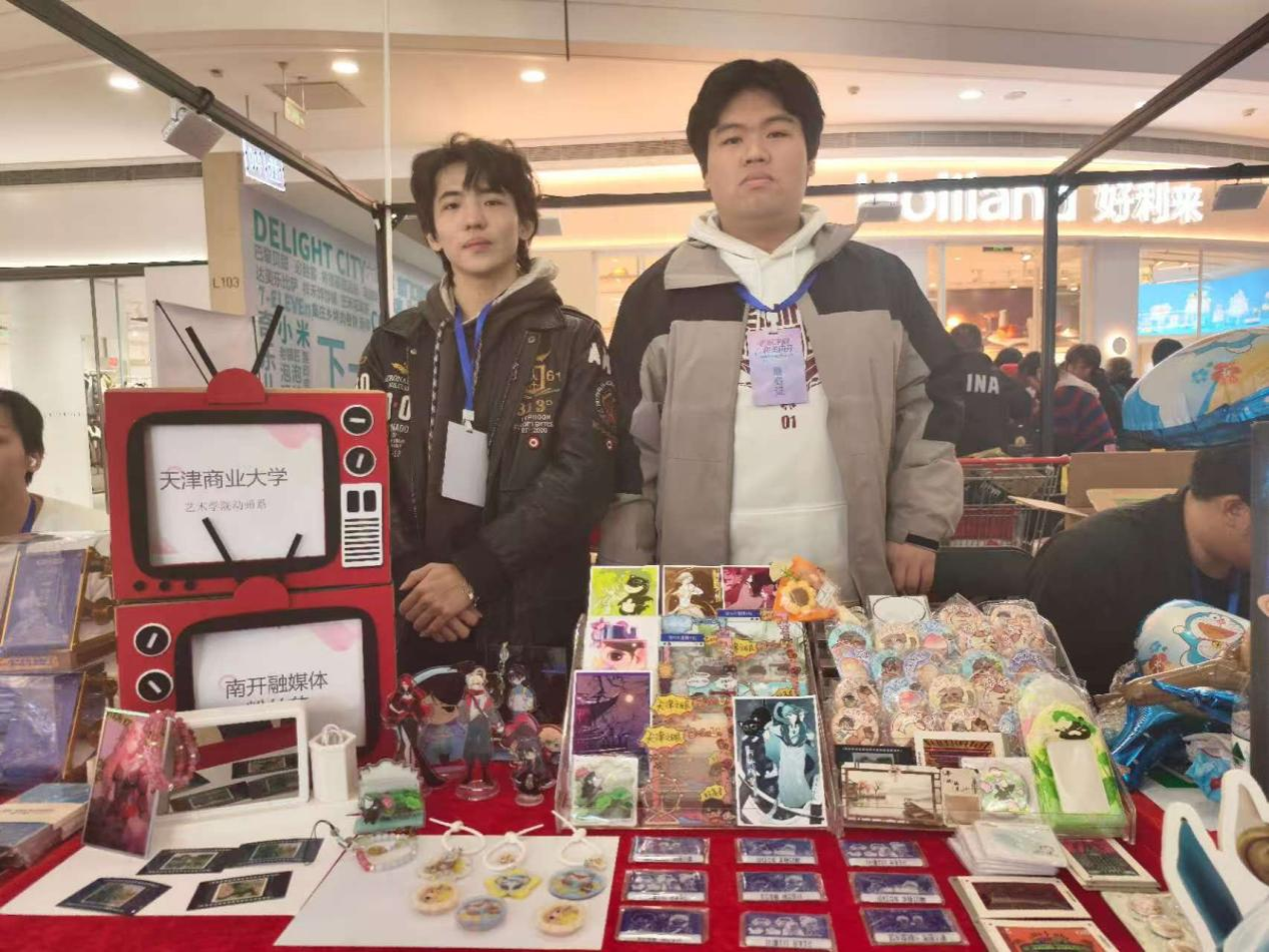 12月26日,由南开融媒体主办的首届粉丝节在熙悦汇商场隆重举行,现场气氛热烈,吸引众多市民参与。德赢ac米兰官方合作vwin艺术学院动画系应邀参展,携学生自主创作的“天津系列”文创产品亮相,充分展现学生的创新活力与设计才华。