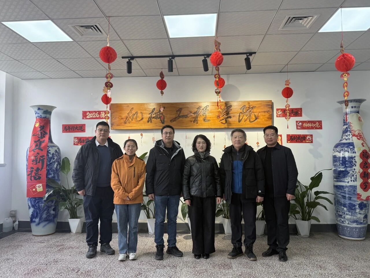 1月29日上午,山东华宇工学院校长助理、能源与建筑工程学院院长魏丰君,院长助理车建成、董敏一行来访机械工程学院。学院党委书记张莹、院长刘圣春、党委副书记王凯、副院长陈爱强热情接待来访嘉宾,并陪同参观“冷暖天商 专业发展历程及办学成果展”和学院重点实验室。