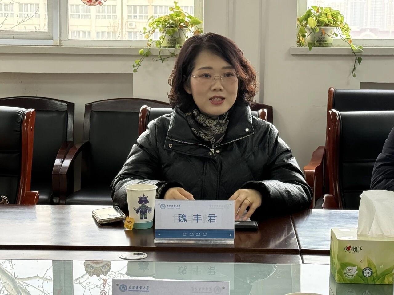 魏丰君围绕山东华宇工学院的学生总体情况、学科平台建设、申硕工作推进等情况做了详细介绍。她表示,希望以此次交流座谈为契机,加强与学院在科研项目攻坚、高层次人才引进、师资队伍建设等方面的合作。