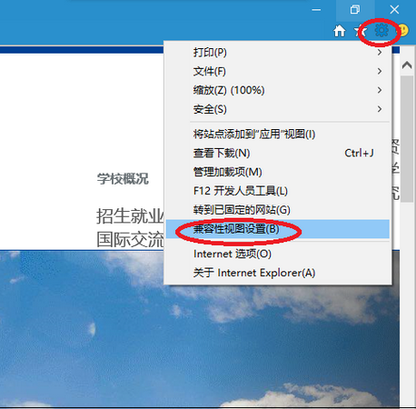 三、如果IE浏览器已经是新版,进入IE浏览器的“兼容性视图”设置选项,把关于校园网主页的设置项全部删除。具体步骤为: