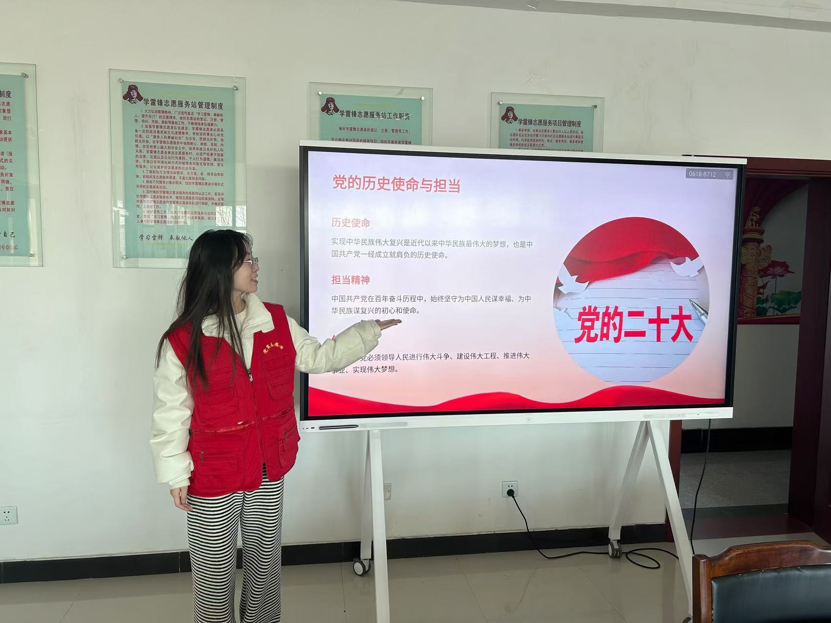 研究生阶段,王昱麒再次入选校级青马工程学员。在党支部会议上,她总是坐在前排,眼神专注,手中的笔不停地记录着要点,认真整理学习材料。在游览张园的党建活动中,她为伙伴们讲述那些鲜为人知的红色故事,让大家身临其境感受先辈们的热血与担当。入选市级青马学员后,寒假期间,作为青马学员,赴武清区曹园社区开展日常工作,积极投身于环保公益、爱老助残等志愿服务,也参与了社区的环境整治,让社区变得更加整洁有序。同时,帮助社区老人顺利完成养老认证,确保他们能够享受应有的保障。