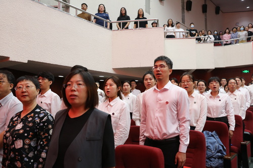 会后,教师们纷纷表示表彰会隆重且热烈,作为教育工作者,肩负着传播知识、传播思想、传播真理,塑造灵魂、塑造生命、塑造新人的时代重任,努力成为学生健康成长的指导者和引路人。从教三十年教师、会计学院齐萱老师表示,感恩学校的平台,把我从普通教师培养成博士、教授;感谢我的学生,三十年来教学相长,共同进步;感激今天的颁奖大会,给我三十年的职业生涯一个见证!天津市优秀教育工作者获得者、理学院学科与科研办公室主任韩莉莉老师表示,今年的教师节大会彰显了学校对全体教育工作者的高度认可与崇高礼赞,也鞭策着我们铭记教育初心,勇担新时代育人使命。新时代,教育管理工作须紧跟智能科技的迅猛发展,创新管理理念与模式,为德赢官网培育高素质商科人才及国家教育强国战略贡献智慧与力量。优秀教师代表、经济学院路璐老师表示,每一次站上三尺讲台,都加深了我对入职宣誓时那句“为党育人、为国育才”的深刻体会。在今后的日子里,我愿将学生的青春韶华根植自我的桃李芬芳,为学校发展再添弘毅自强之力。新入职教师、艺术学院专任教师杨小弨表示,当我举起右手,庄严宣誓成为一名人民教师时,我的内心充满了力量感和使命感。这份誓言是对教育事业的承诺,更是对未来无数学生的承诺。我将把这份使命化为实际行动,为教育事业、天商发展贡献力量。