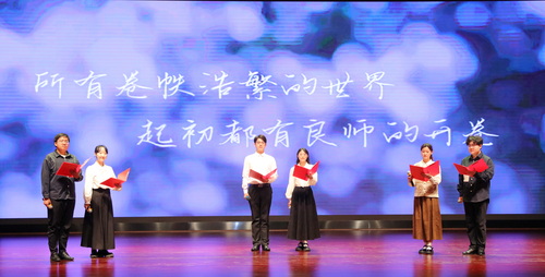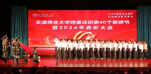 教师节庆祝活动以视频《老师,您辛苦了》拉开序幕,学生献上朗诵《致教师》,表达对全体教师的节日祝福。师生合唱《向着光》彰显天商人怀揣梦想、勇往直前,向光而行的坚韧与决心。新入职教师和退休教师携手带来诗朗诵《师者论道》诠释了师德传承教师的力量,青年教师接过教育事业的火种,以教育家精神为引领,用过硬的专业能力、渊博的学识水平、深厚的仁爱之心,勇担起中国式现代化培育时代新人的职责使命。表彰大会在《再一次出发》的歌声中落下帷幕。