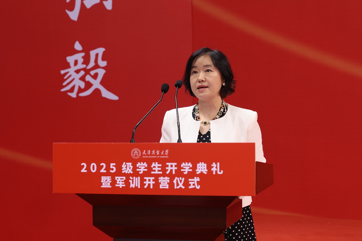 陈冠益在开学典礼上讲话并为全体新生讲授“开学第一课”。他在讲话中指出,45年来,天商始终致力于为党育人、为国育才,高质量推进特色鲜明高水平商业大学建设;致力于提升教育教学水平,增强办学实力;致力于改善育人环境,持续提升服务保障水平。他强调,今年是中国人民抗日战争暨世界反法西斯战争胜利80周年,作为新时代青年,要牢记习近平总书记嘱托,铭记历史、缅怀先烈、珍爱和平、开创未来。