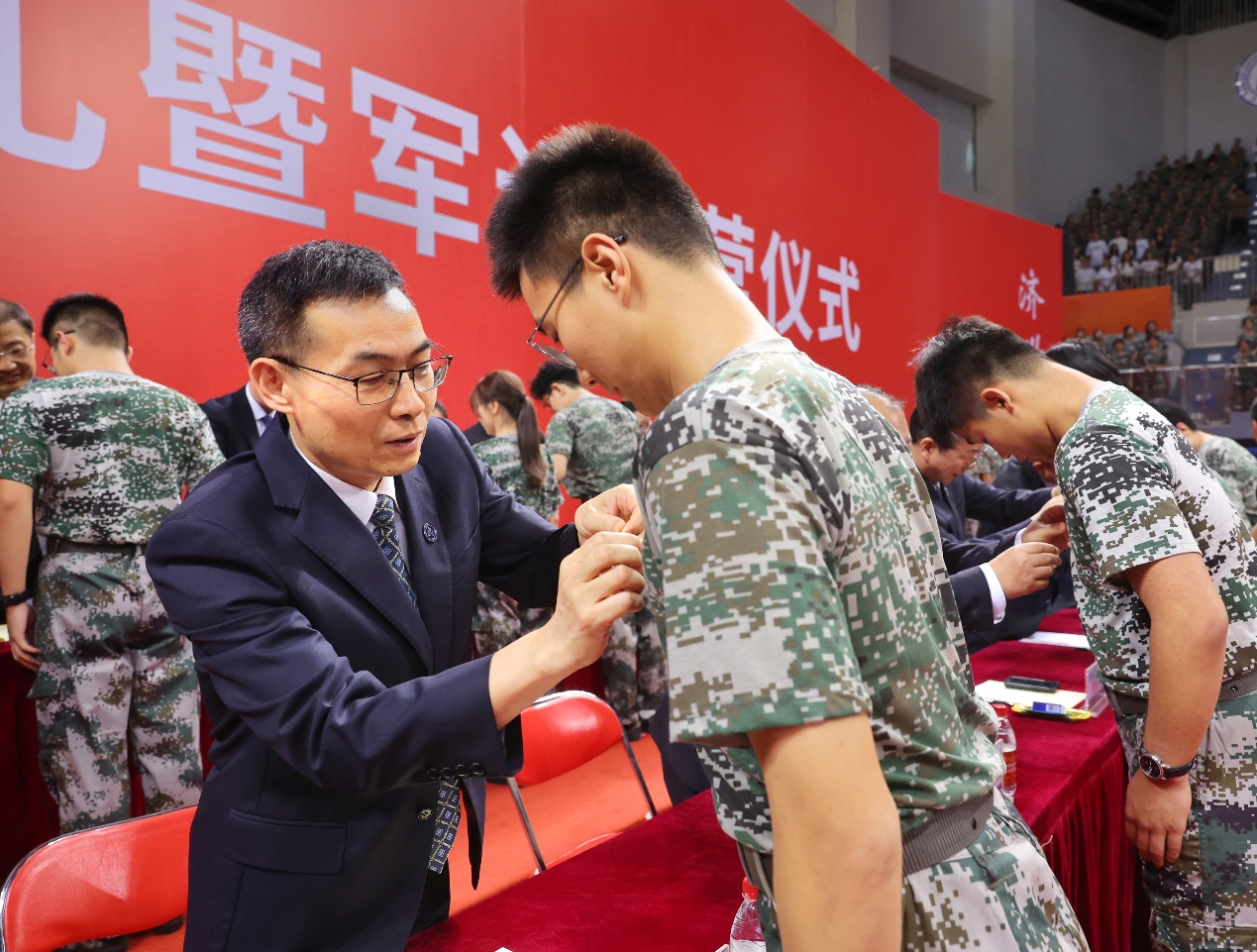 9月8日下午,德赢ac米兰官方合作vwin2025级学生开学典礼暨军训开营仪式在学校体育馆隆重举行。校党委书记张亚,校党委副书记、校长陈冠益,校党委副书记崔强,副校长余江、齐恩平出席典礼并为2025级新生代表佩戴校徽。相关职能部门和各学院主要负责同志、校友代表、在校师生代表和2025级全体新生参加。