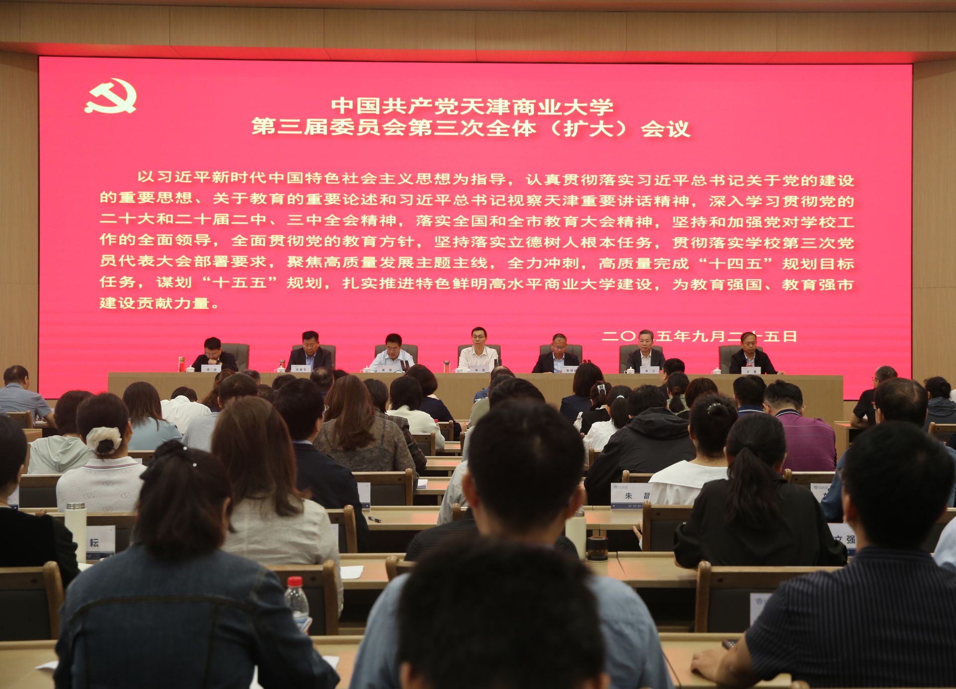 会议要求,全校上下要深入学习贯彻第三届委员会第三次全体(扩大)会议精神,切实把思想和行动统一到校党委决策部署上来,聚焦高质量发展主题主线,坚持问题导向、目标导向、效果导向,坚定信心、锐意进取、真抓实干,高质量完成各项目标任务,推动特色鲜明高水平商业大学建设再谱新篇章,为教育强国建设、民族复兴伟业贡献天商力量。