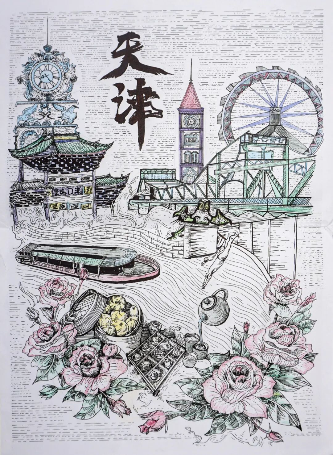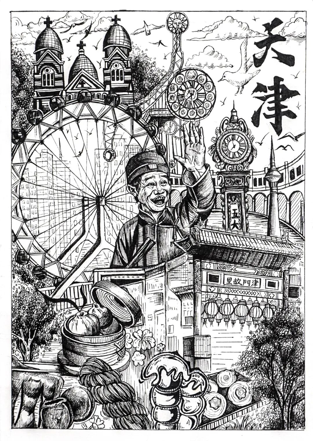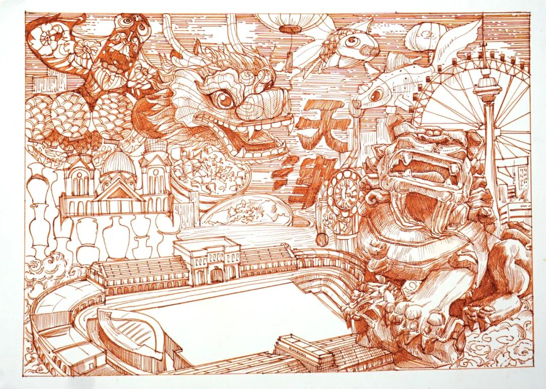 本次展览以“弘扬天津地域文化特色、展现城市风貌与人文情怀”为核心宗旨,吸引了全市多所院校及艺术创作者参与。德赢官网获奖作品题材紧扣“津城文化”核心,从五大道的欧式风情、老城厢的传统建筑,到滨海新区的城市新景,均以钢笔为媒介,通过细腻线条,生动诠释了新时代青年对家乡文化的认同与热爱。
