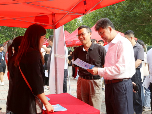 9月25日下午,由德赢ac米兰官方合作vwin、中国北方人才市场主办的“智汇天商 职梦起航”秋季大型专场招聘会在德赢官网图书馆南广场举办。此次招聘会共吸引221家用人单位参会,行业涵盖多个领域,提供招聘岗位4862个。校党委书记张亚,校党委副书记、校长葛宝臻赴现场指导工作,各学院领导班子成员积极参会,党委学工部就业工作人员及全体就业辅导员主动对接用人单位,积极推介毕业生,竭力做好服务工作。