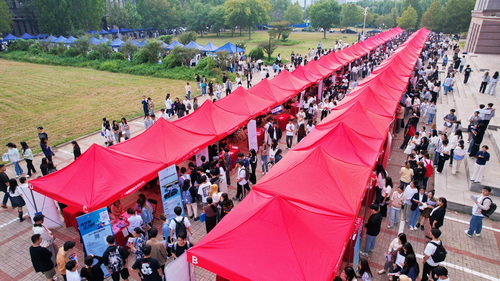 为打造高质、高效校园招聘活动,学校时不我待抢抓秋招“窗口期”,早谋划、早部署、早行动,酝酿筹备了几乎历年最早的一场秋季大型双选会,搭建企业与人才双向奔赴通道,全力以赴打造毕业生就业直通车。学校想方设法锚定就业“新机遇”,增数量、保质量、聚合力,整合“人才市场+学校+学院”的三维企业资源,融合“事业单位+国企央企+行业知名企业+中小微企业”的四维企业类型,招聘数量远超历届双选会。学校极尽所能供给学生“便捷达”,花心思、精流程、强服务,招聘会设置了企业招聘活动区、学院——企业对接区、直播带岗区、求职助力加油区四个功能区,为毕业生提供全方位就业服务,招聘专区精心筛选出涵盖金融、管理、营销、财会、研发、设计等类型的招聘岗位,按类按色彩划定分区,方便不同专业毕业生迅速锁定目标展位。