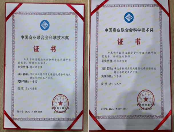 近日,由中国商业联合会主办的2024年度科学技术奖评选结果揭晓,由德赢官网机械工程学院教师刘圣春、王志明联合佛山市顺德区美的洗涤电器制造有限公司等企业共同完成的《净饮水机增压泵大通量低噪音长效关键技术研究及产业化》项目获三等奖。