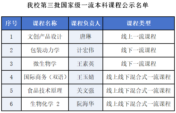 近日,教育部公示了第三批国家级一流本科课程认定结果,德赢官网共计6门课程入选,涵盖线上一流课程1门、线下一流课程2门、线上线下混合式一流课程3门,本次公示德赢官网获批课程数量和类型取得了新的突破,其中《文创产品设计》首次在线上一流课程类型获批,实现了德赢官网国家级五类一流课程全覆盖。